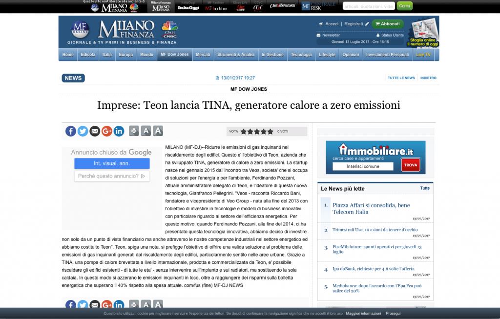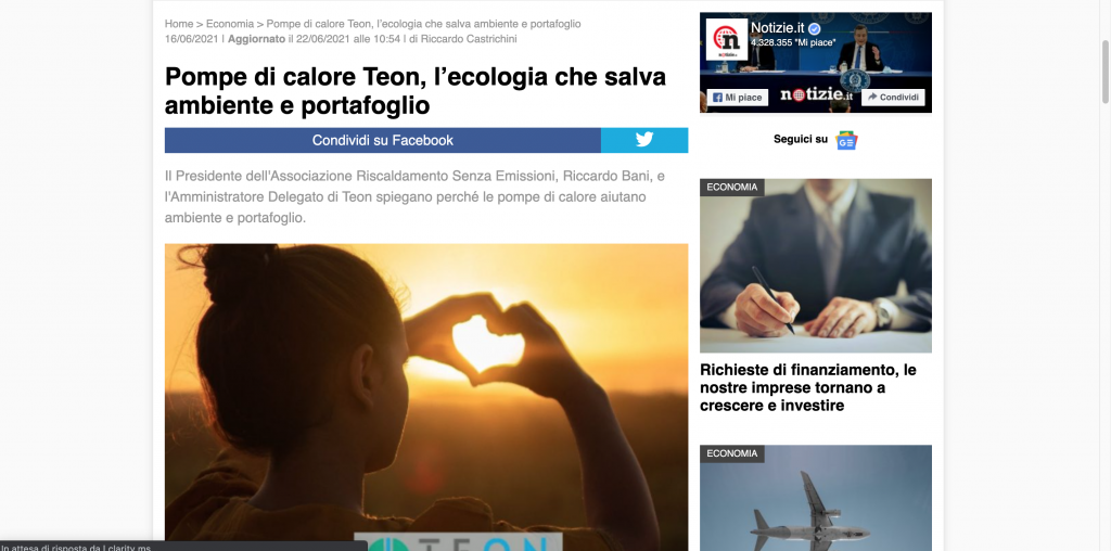TEON è al centro dell’attenzione della stampa e del web e viene riconosciuta come